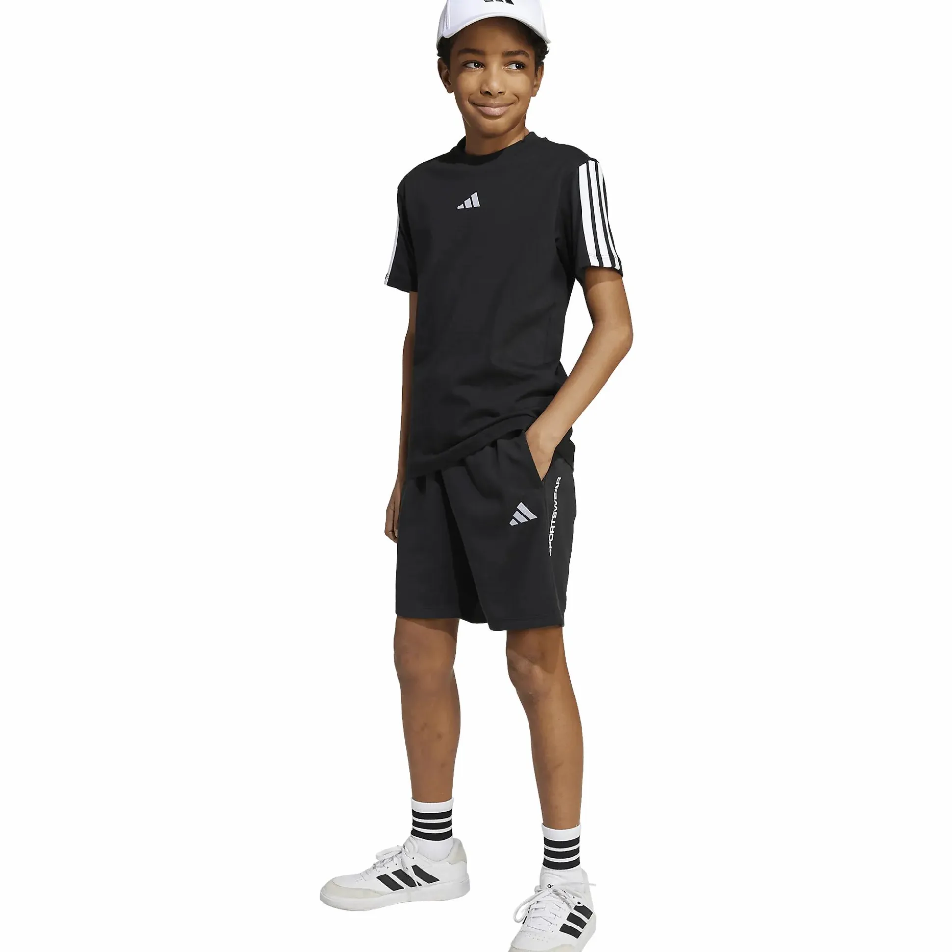 Disse shortsene fra adidas er et komfortabelt valg for både lek og hverdag. Laget i et mykt materiale som føles behagelig mot huden. Den elastiske midjen med justerbar snøring gir en sikker passform som enkelt kan tilpasses etter behov. Materialet består av en blanding av bomull og resirkulert polyester, noe som gjør dem til et komfortabelt og mer bevisst valg i garderoben.