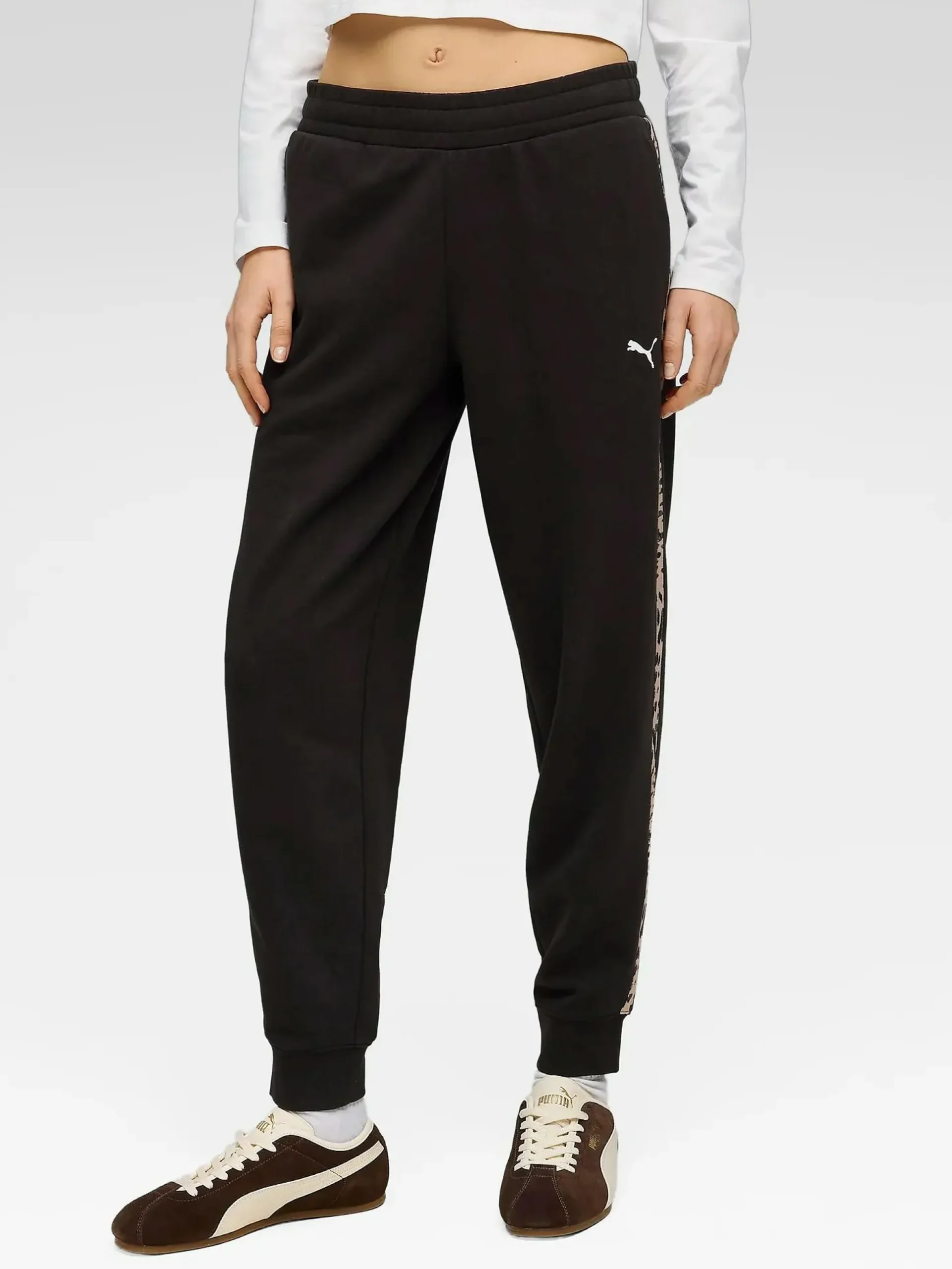Disse sweatpantsene fra PUMA Essentials Graphic-kolleksjonen gir en avslappet stil med sporty følelse. De er laget i et mykt og litt tykkere materiale som passer perfekt for hverdagen, hvile eller reisen til og fra treningen. Midjen har en utvendig snor for justerbar passform. Ribbestrikkede mansjetter ved bena gir en ren silhuett, mens sidelommer gjør det enkelt å oppbevare småting. De vevde detaljene med dyremønster løfter designen med grafiske innslag.