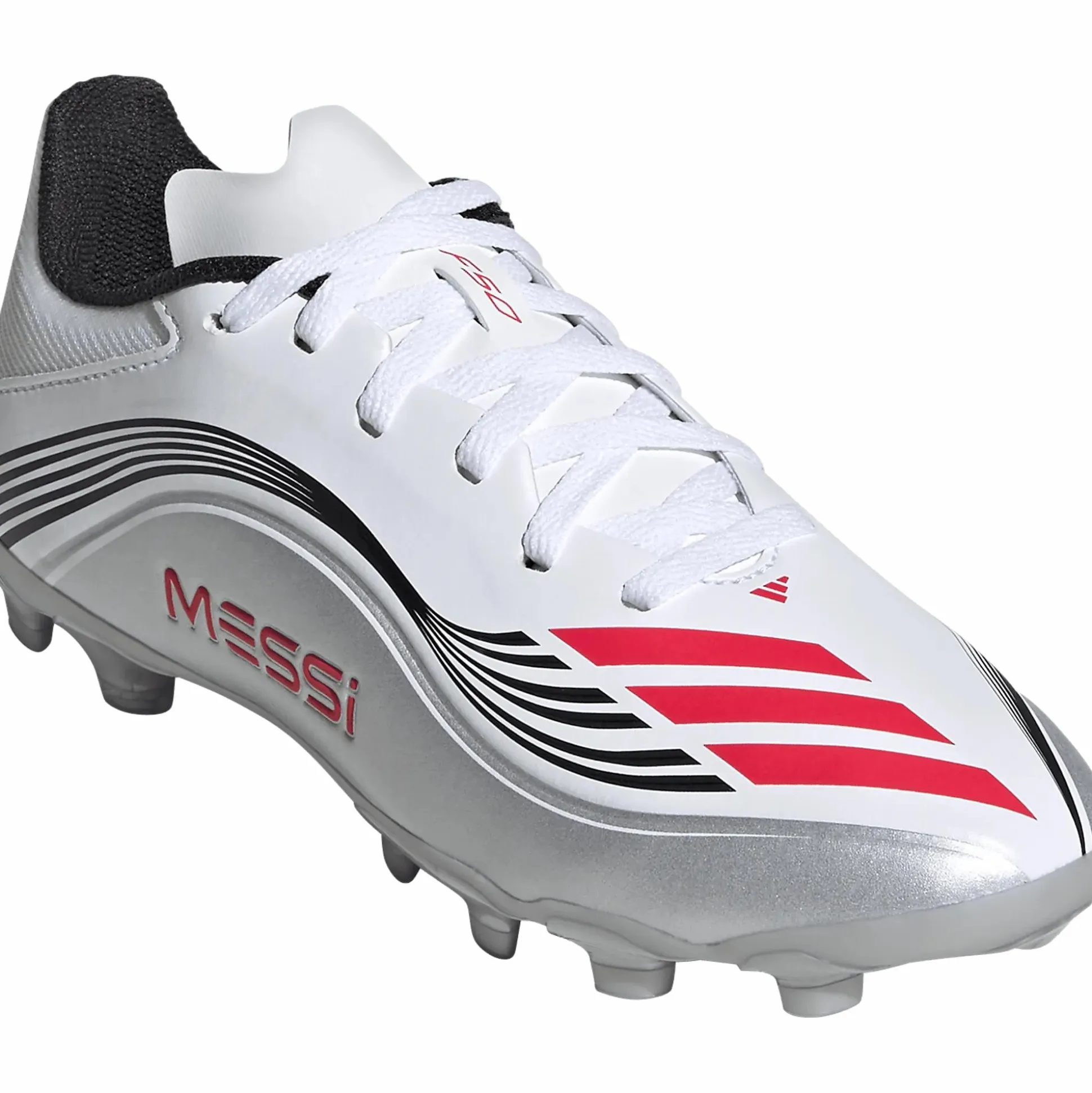 F50 Messi League Multi Ground Boots Kids fra adidas er fotballsko for barn som vil spille med samme hurtighet og presisjon som Lionel Messi. Skoene inngår i en kolleksjon som er utformet etter Messis krav på banen og har en lett konstruksjon med HybridTouch-overdel som gir en skinnlignende følelse og god ballkontroll. Den syntetiske pløsen og tekstilfôret gir en komfortabel passform, mens yttersålen med Sprintplate 360 er tilpasset for raske retningsforandringer på ulike kunstgressunderlag. En sko for unge spillere som vil dominere hver kamp, uansett bane.