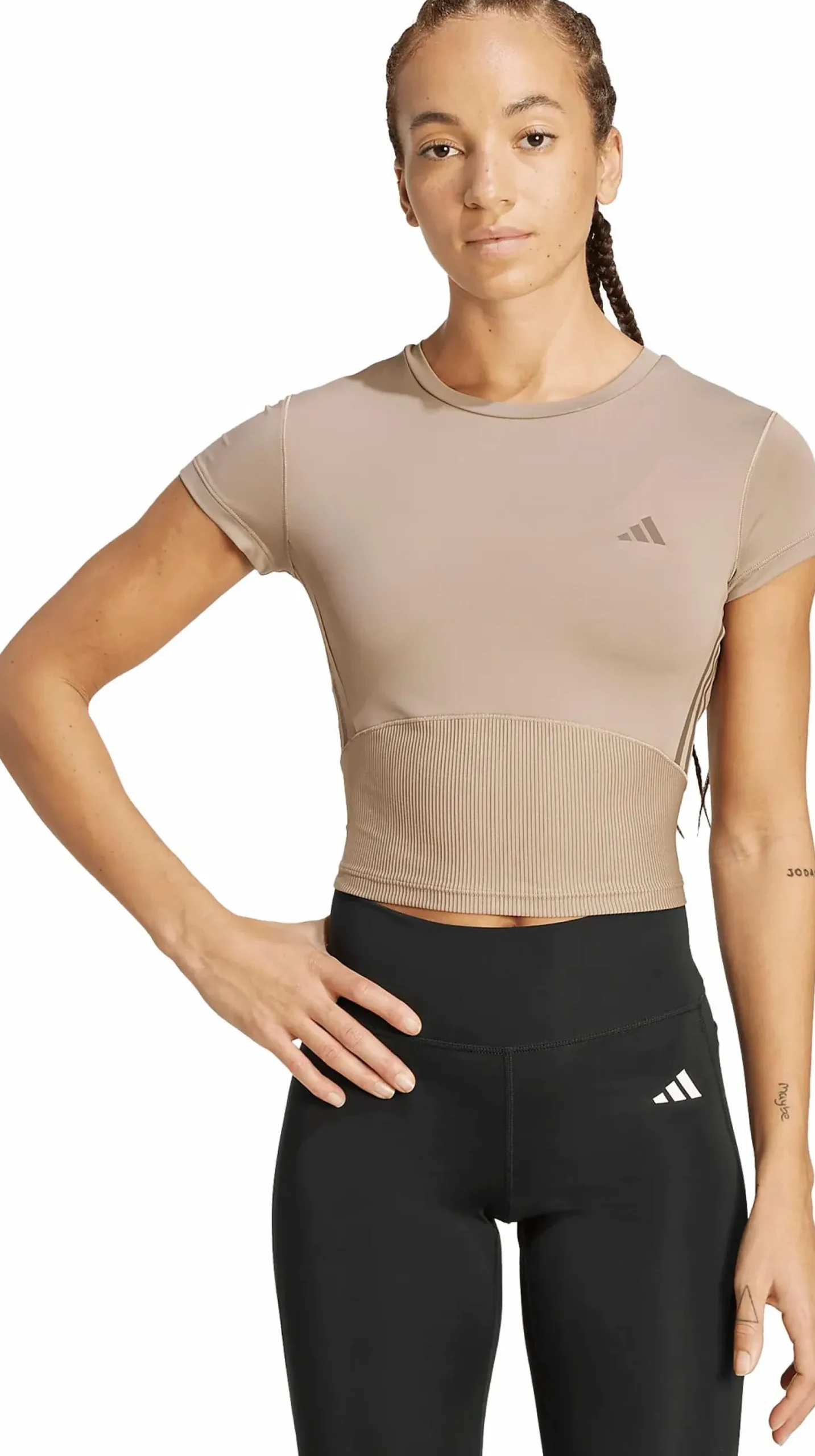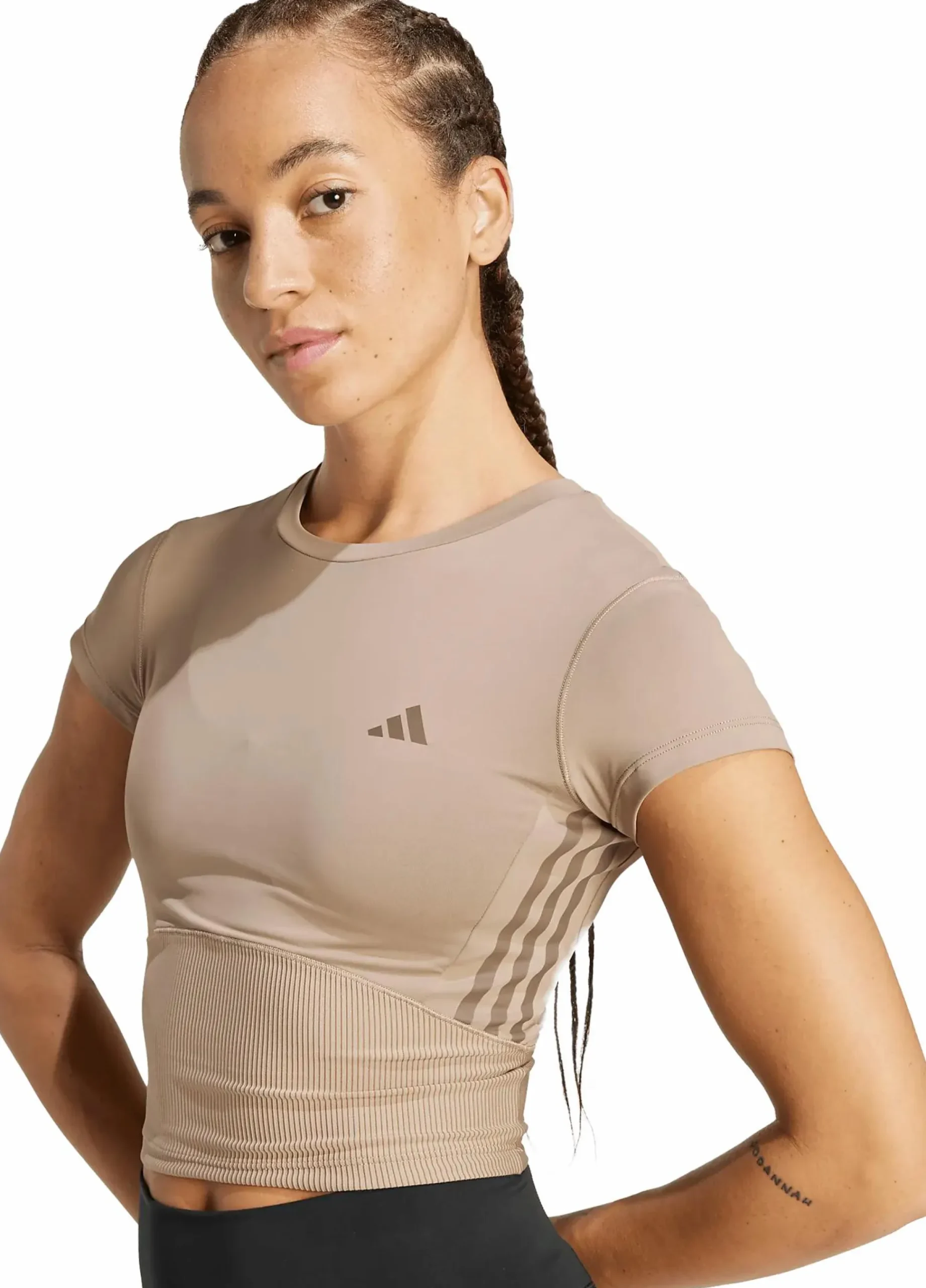Denne korte treningstoppen fra adidas har en smalere passform og en design som kombinerer sporty funksjon med moderne stil. Med sin korte lengde passer den perfekt til høye tights eller bukser, uansett om du trener eller kler deg for en aktiv hverdag. Ribbestrikkede paneler gir struktur og en visuell detalj som løfter helheten, samtidig som CLIMACOOL-teknologien hjelper til med å holde deg tørr og komfortabel selv under intense økter. Det hurtigtørkende materialet leder bort fukt og gir en sval følelse mot huden. En topp som passer for alt fra trening til avslappede anledninger – der funksjon og form går hånd i hånd.