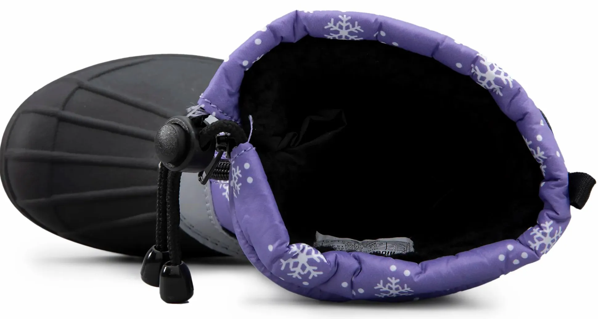 Vinterstøvler med en vanntett membran og en vanntett gummidel nederst. De er lette å ta på og av med den praktiske glidelåsen på forsiden. Justerbar snølås øverst i skaftet holder snø og kulde ute.
