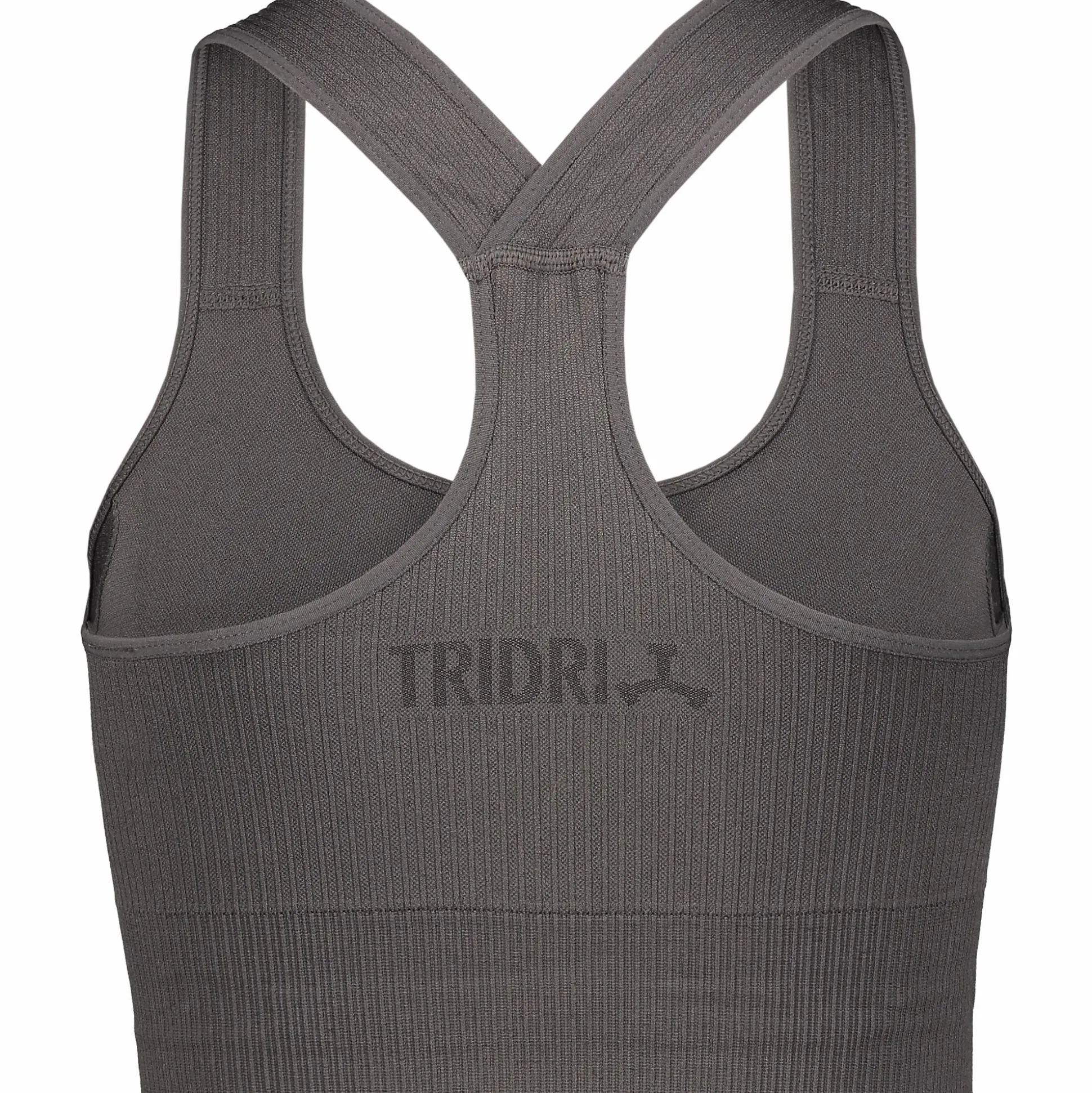 Ribbet sports-BH med fleksibel passform, middels støtte og få sømmer for høy komfort og bevegelsesfrihet.