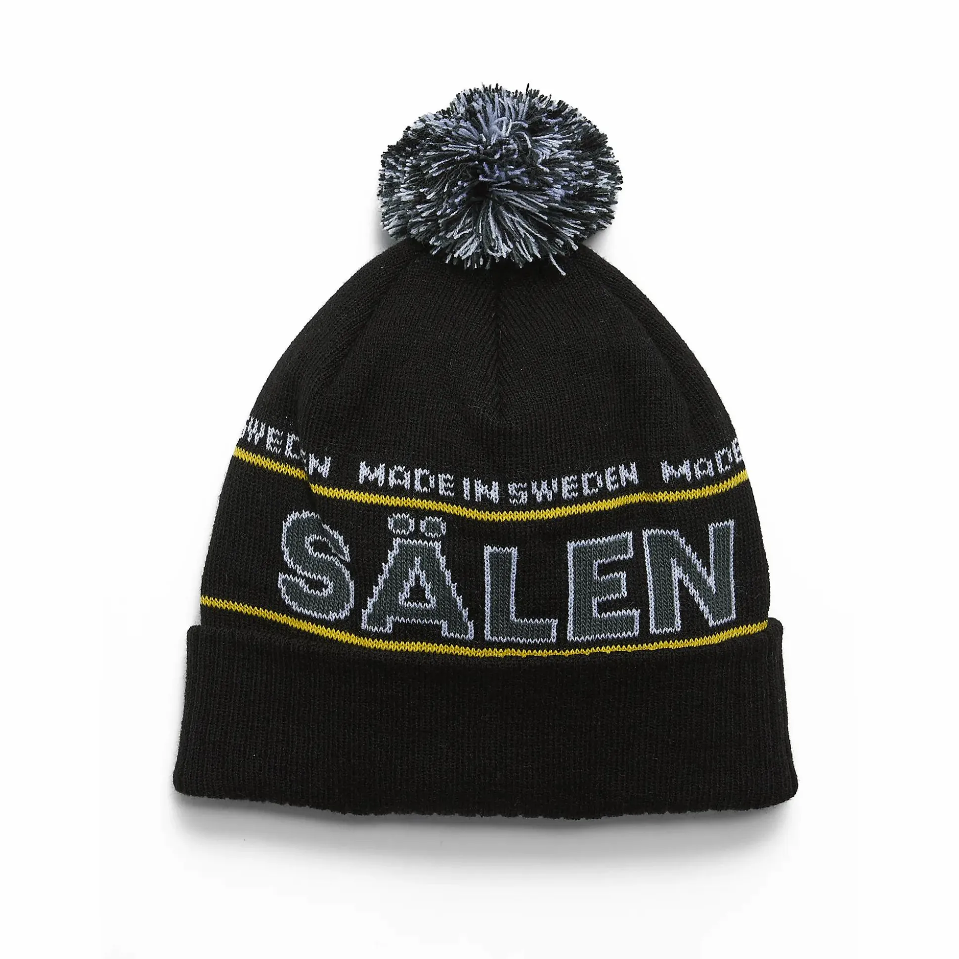 Seg Pom Beanie Sälen er en glattstrikket lue i doble lag med oppbrettet kant og avtagbar dusk, designet for å gi varme og komfort på kalde dager.