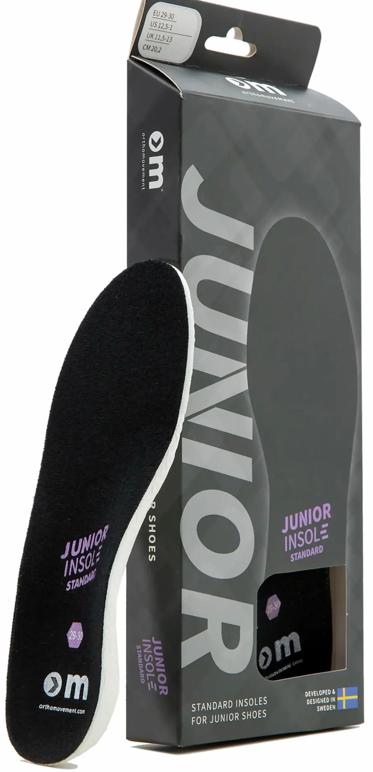 Junior Insole Standard fra Ortho Movement er innleggssåler som er en klar forbedring i forhold til de som kommer med skoene du kjøper — disse har bedre støtdemping og komfort og reduserer risiko for gnagsår og blemmer. Når originalsålene blir slitt, mister fasong eller begynner å lukte ille, er Junior Insole Standard en perfekt erstatning.