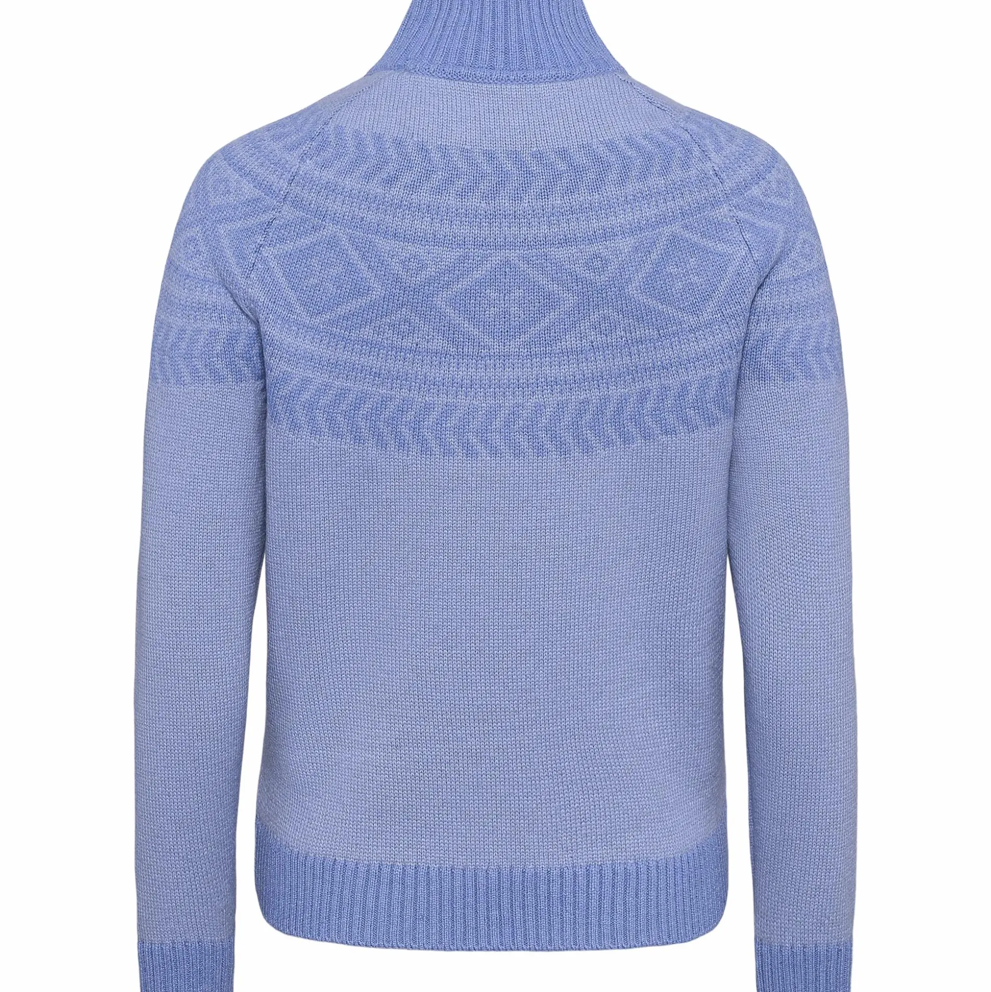 Sonja Knit W fra Kari Traa er en strikket genser med et dekorativt mønster. Den er laget i et jacquardstrikket materiale av polyester, polyamid og ull. Materialet gir en myk og varmende følelse mot huden, noe som gjør genseren brukbar både til hverdags og utendørsaktiviteter. Genseren har en rund halsringning samt ribbede mansjetter, krage og nederkant som bidrar til en behagelig passform.