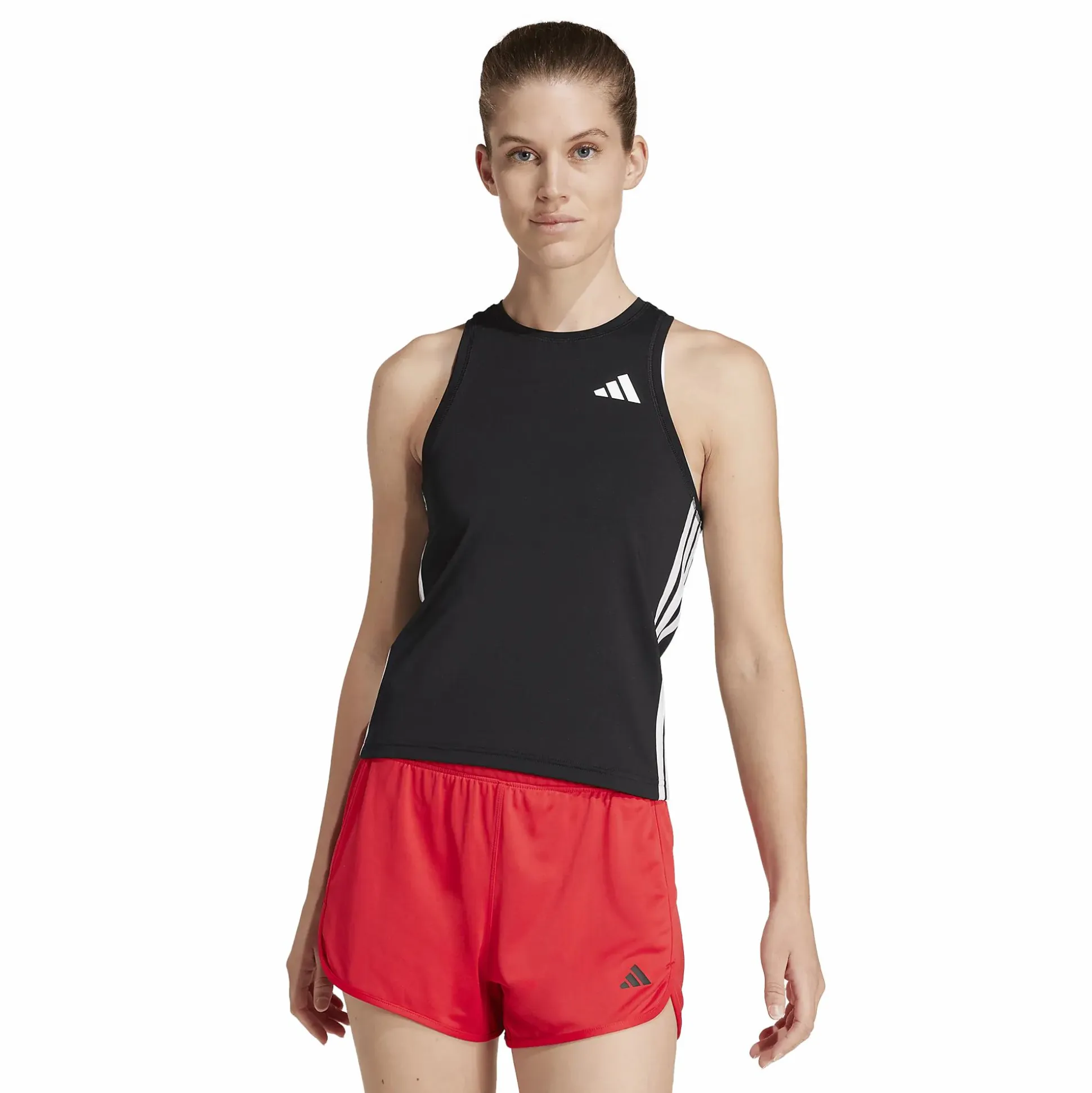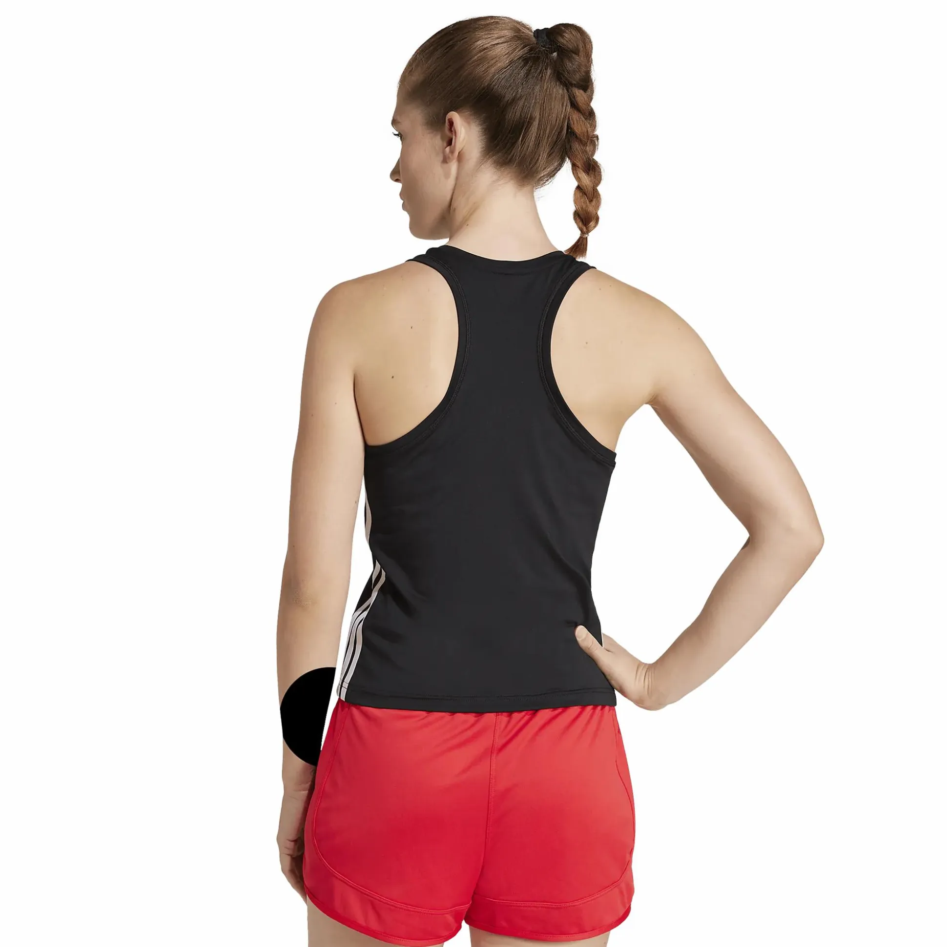 Adidas Train Essentials 3-Stripes Tank er en funksjonell singlet for intensive treningsøkter. Den har en tettsittende passform og bryterrygg som gir full bevegelsesfrihet. Det myke materialet med CLIMACOOL-teknologi transporterer bort svette og tørker raskt for en sval og tørr følelse under hele økten.