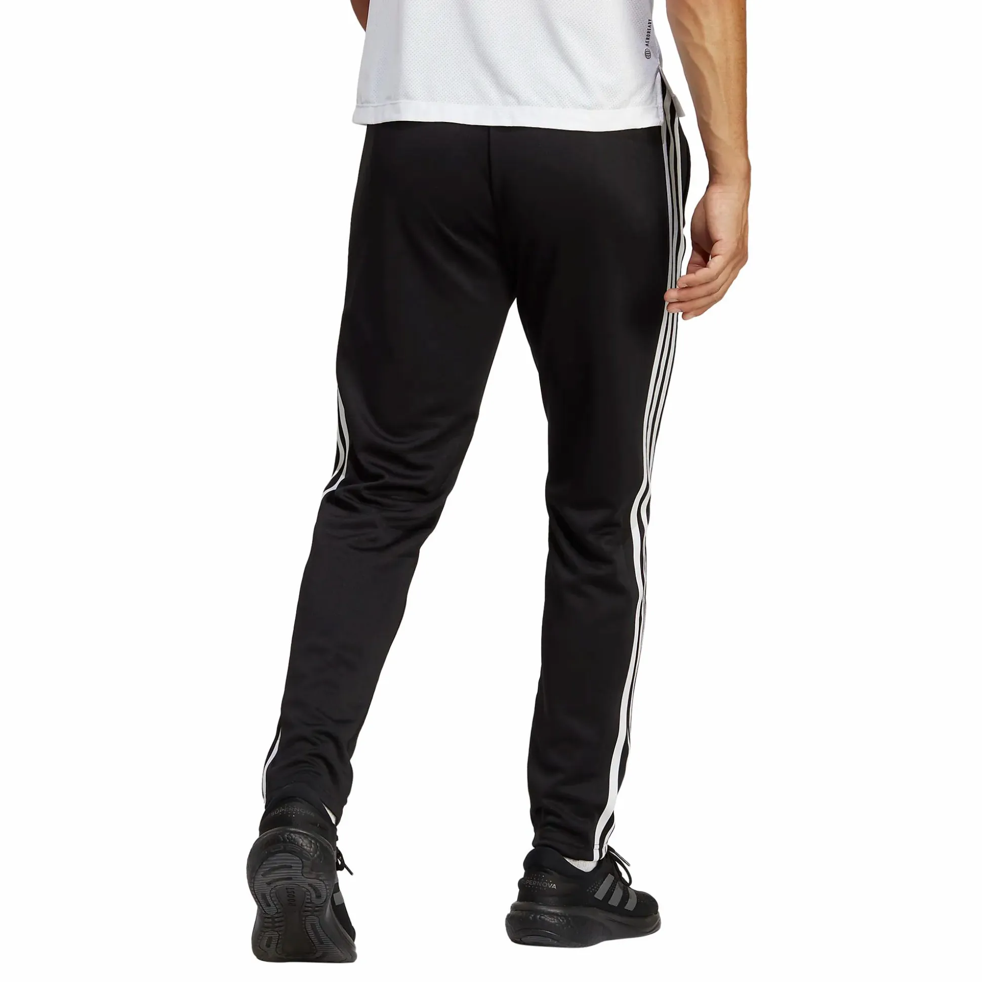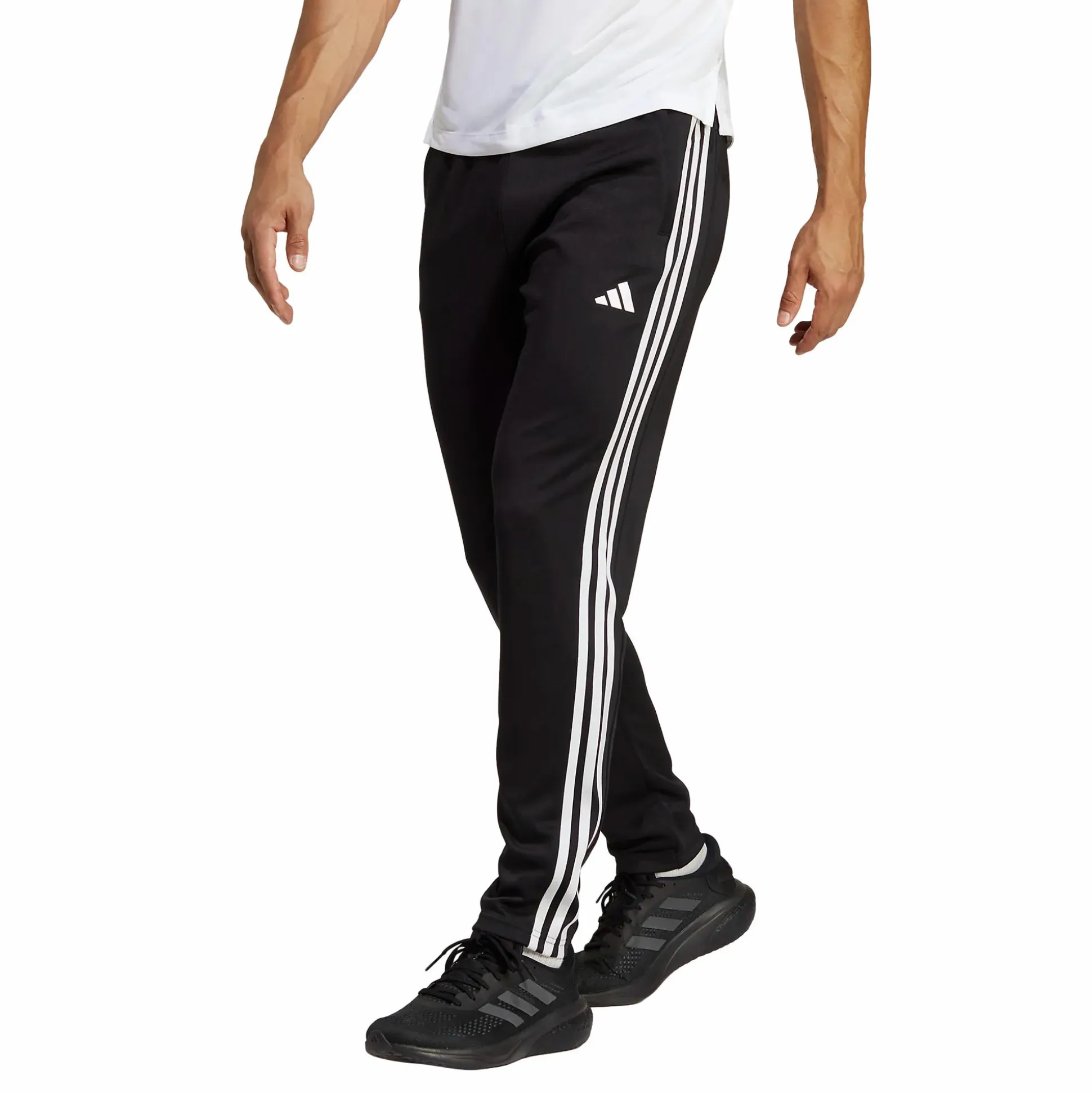 Train Essentials 3-Stripes Training Joggers fra adidas er allsidige treningsbukser som passer perfekt ved kaldere vær eller kjølige gymmiljøer. Det resirkulerte materialet er utstyrt med AEROREADY-teknologi som transporterer bort fuktighet slik at du holder deg tørr når intensiteten øker. Buksene har en justerbar midje med snøring for sikker passform og avsmalnende ben som gir bevegelsesfrihet ved både oppvarming og styrketrening. Sidelommer med glidelås gir plass til dine viktigste eiendeler under økten.