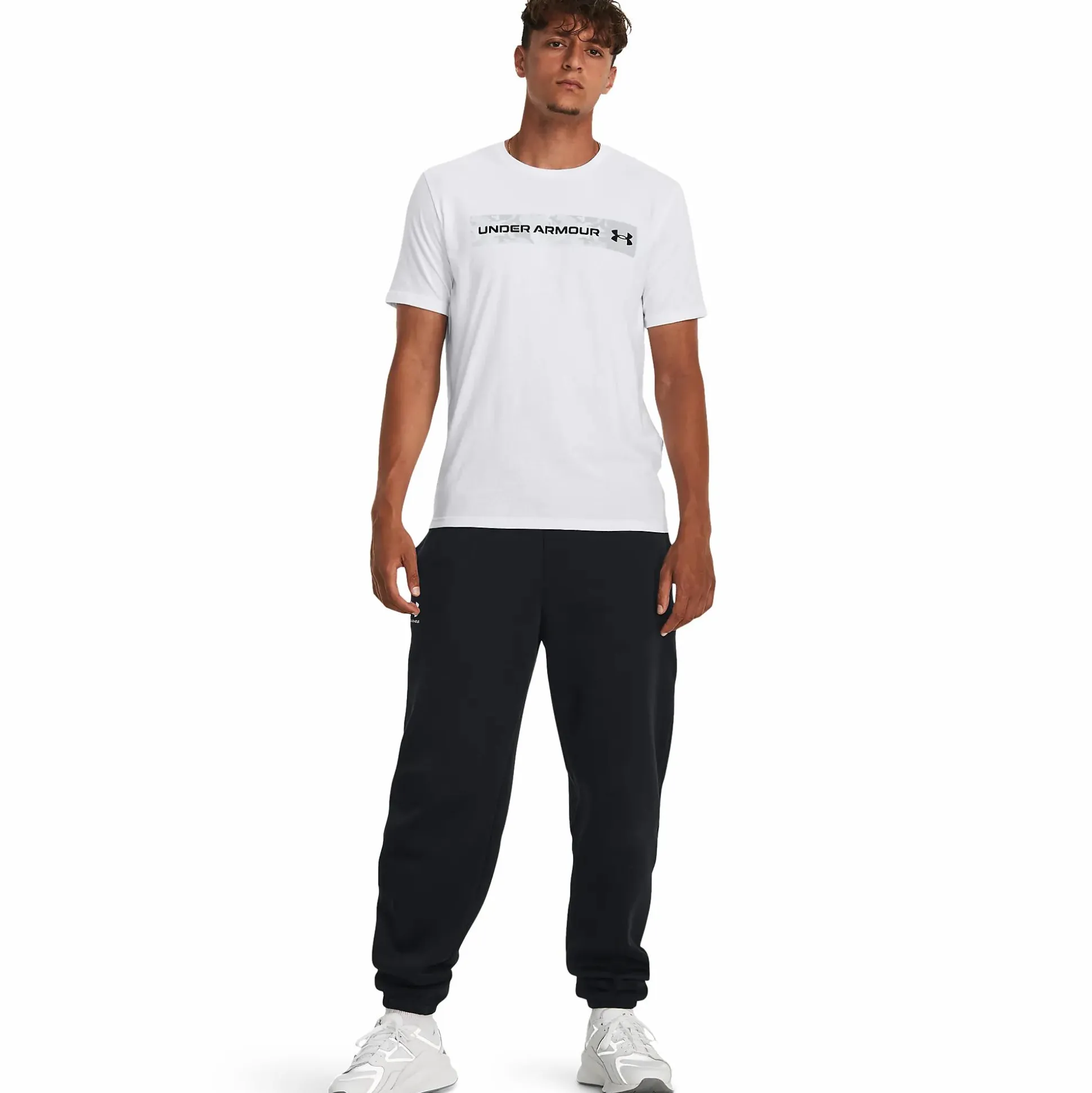 UA Camo Chest Stripe Short Sleeve fra Under Armour er en stilren t-skjorte med høy komfort for hverdagens alle situasjoner. Den er laget i en myk bomullsblanding som føles behagelig hele dagen, samtidig som materialet tørker raskere enn vanlig bomull. Den ribbede kragen gir en klassisk passform og trykket på brystet gir skjorten en sporty følelse. Perfekt til både trening og fritid.