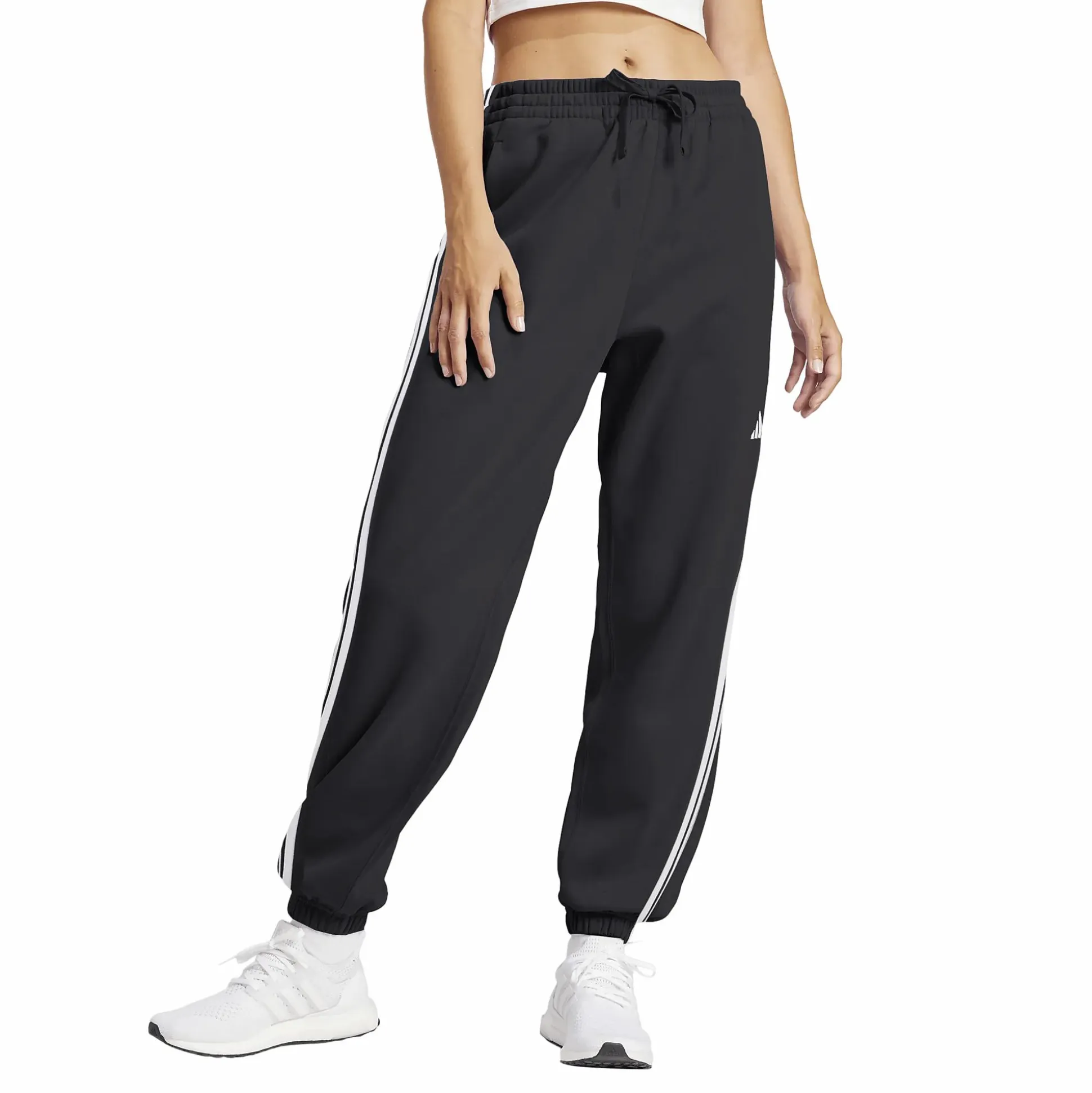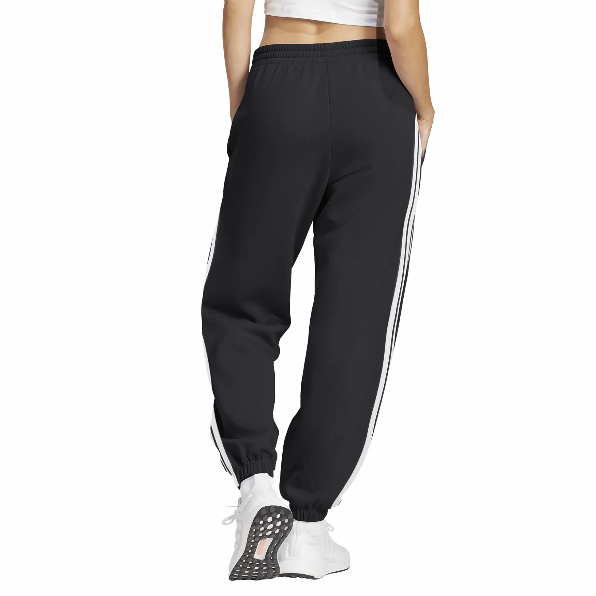 Essentials 3-Stripes French Terry Cuffed Pants fra adidas er designet for å gi komfort i hverdagen uansett om du slapper av hjemme eller er ute på ærender. Buksene er laget i en myk og smidig fransk frotté, med en blanding av bomull og resirkulert polyester som føles behagelig mot huden. Buksene har en middels høy, elastisk midje med snøring for justerbar komfort. De klassiske 3-Stripes langs sidene og ribbede mansjetter ved bena gir et sporty uttrykk som passer både til trening og hverdagsbruk. Med to praktiske sidelommer får du plass til mobil, nøkler eller andre småting. Et komfortabelt og stilrent basisplagg som er enkelt å matche med en hettegenser eller t-skjorte.
