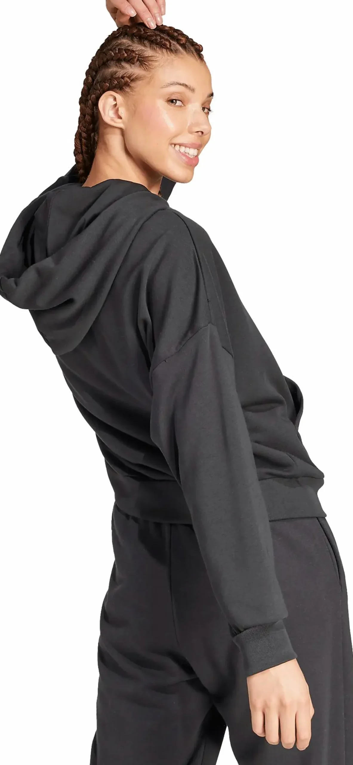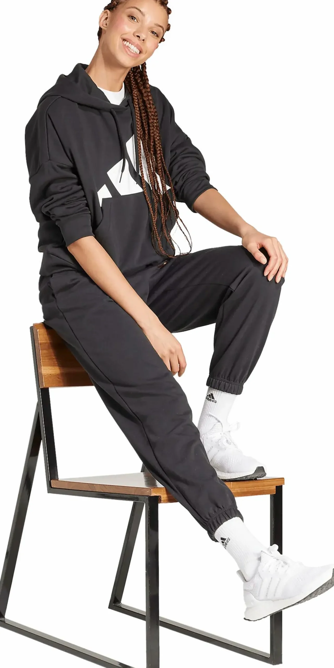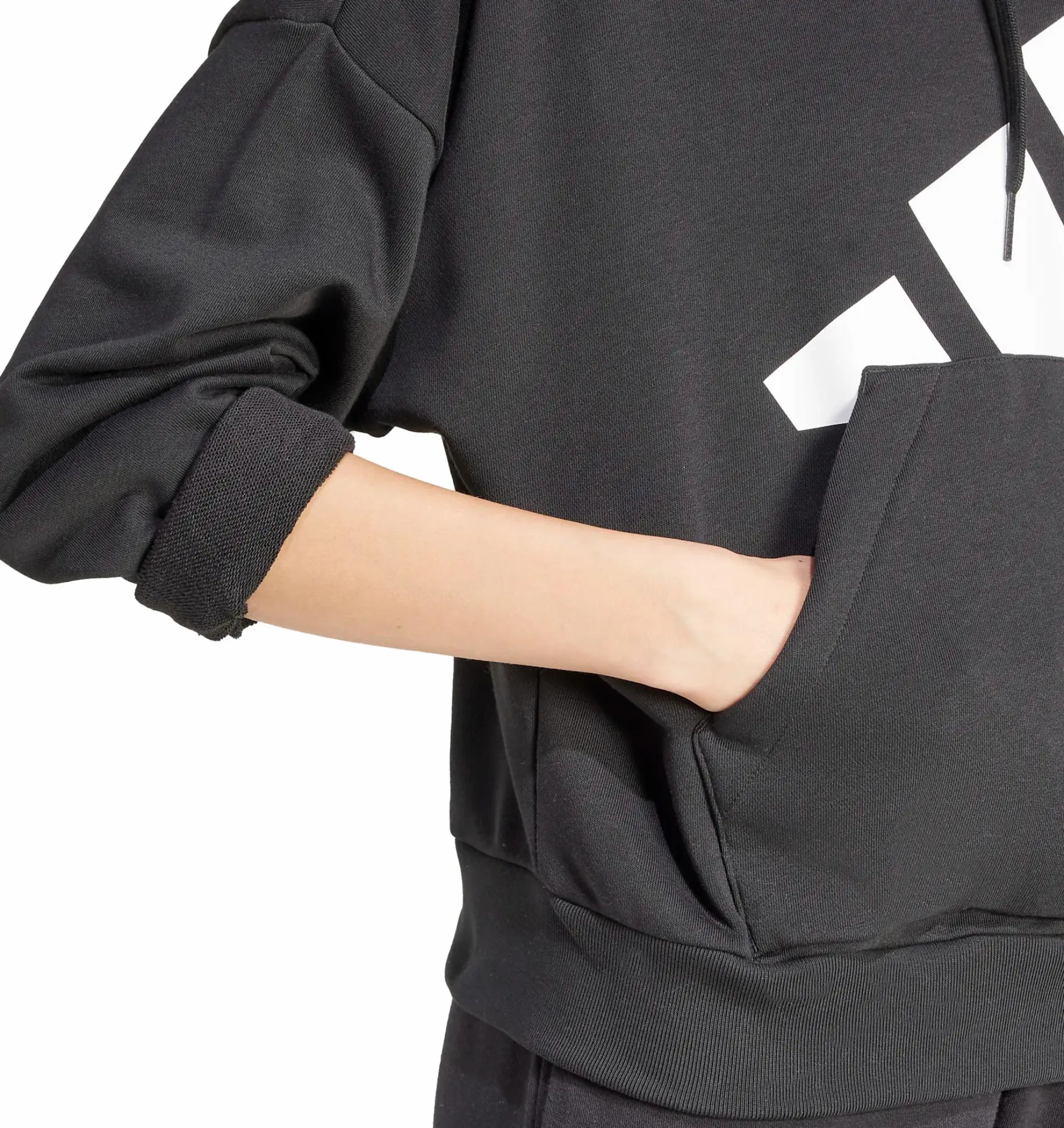 Essentials Big Logo French Terry Loose Hoodie fra adidas er et avslappet basisplagg med noe løsere passform og stor logo foran. Det myke materialet gir en behagelig følelse som passer både for hvile hjemme og ærender i byen. Hette er justerbar med snor, og de ribbestrikkede mansjettene hjelper til med å holde varmen.