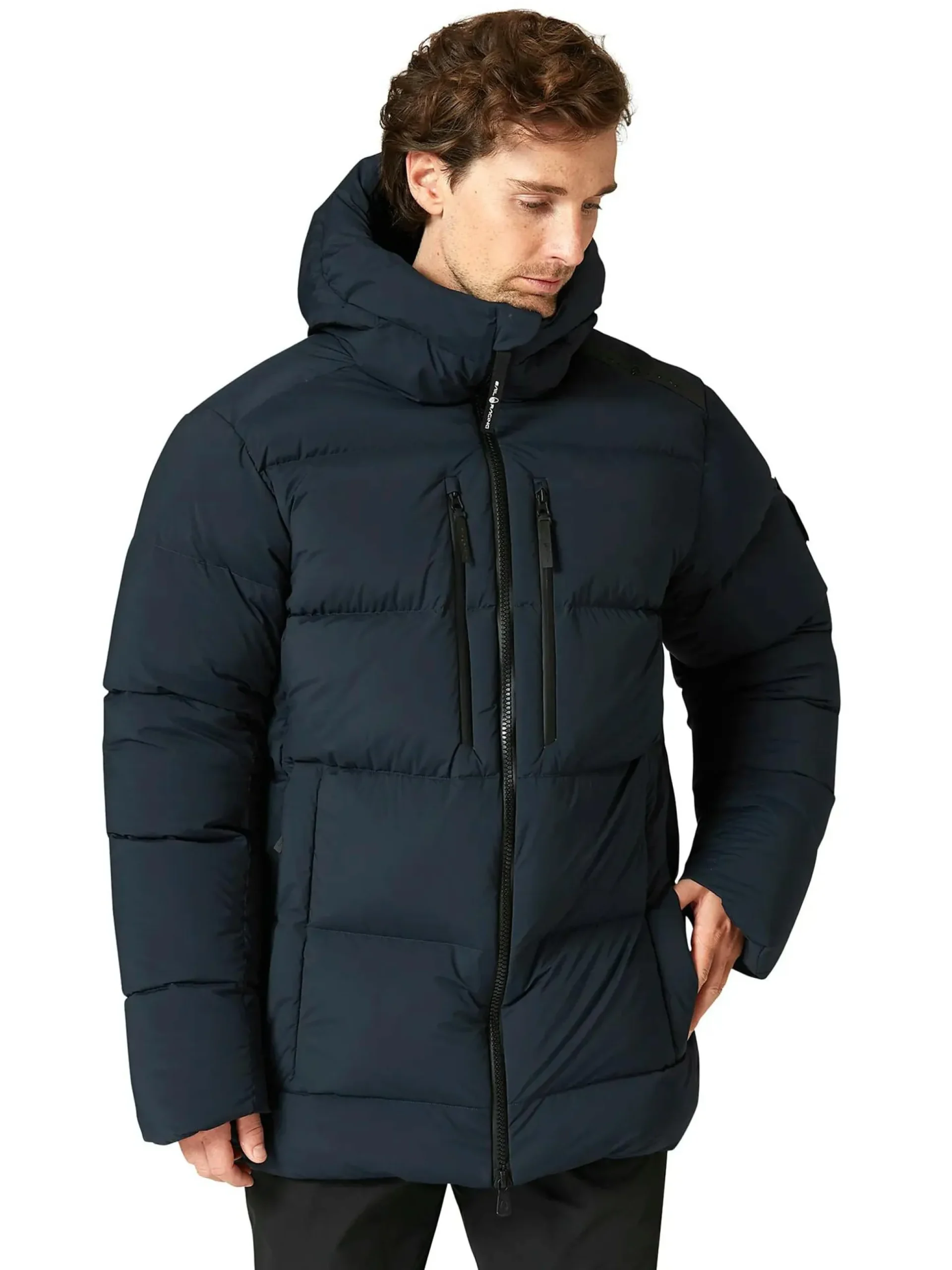 Hurricane Down Parka fra Sail Racing er en beskyttende vinterjakke utviklet for kalde og utfordrende værforhold. Jakken er laget i slitesterk nylon og polyuretan og har en vind- og vanntett overflate. Den unike doble dunlagerskonstruksjonen med overlappende kanaler minimerer varmetap og forbedrer isolasjonsevnen i ekstreme forhold. Innsiden er foret med resirkulert grafennylon som hjelper til med å regulere kroppstemperaturen. Vatteringen består av Blue Sign- og RDS-sertifisert dun og fjær som gir lav vekt og høy varme. Jakken er utstyrt med en toveis YKK Aquaguard®-glidelås som beskytter mot vann. Hette kan justeres med snor og har en dunfylt kanal rundt åpningen for økt varme og beskyttelse. Ermelinningene er forlenget over håndens bakside og har innvendige mansjetter i Polartec-fleece med tommelgrep, et ekstra beskyttende lag mot kulde. Oppbevaring består av to sidelommer med skjulte glidelåser, to brystlommer og to innerlommer i mesh. Alle ytterlommer er foret med mikrofleece for ekstra komfort. Jakken har dessuten en justerbar snor i nederkant for optimal passform. Gjennom Track My Down kan du spore nøyaktig opprinnelse og egenskaper for dunet med ID-nummer 1918L23F2458.