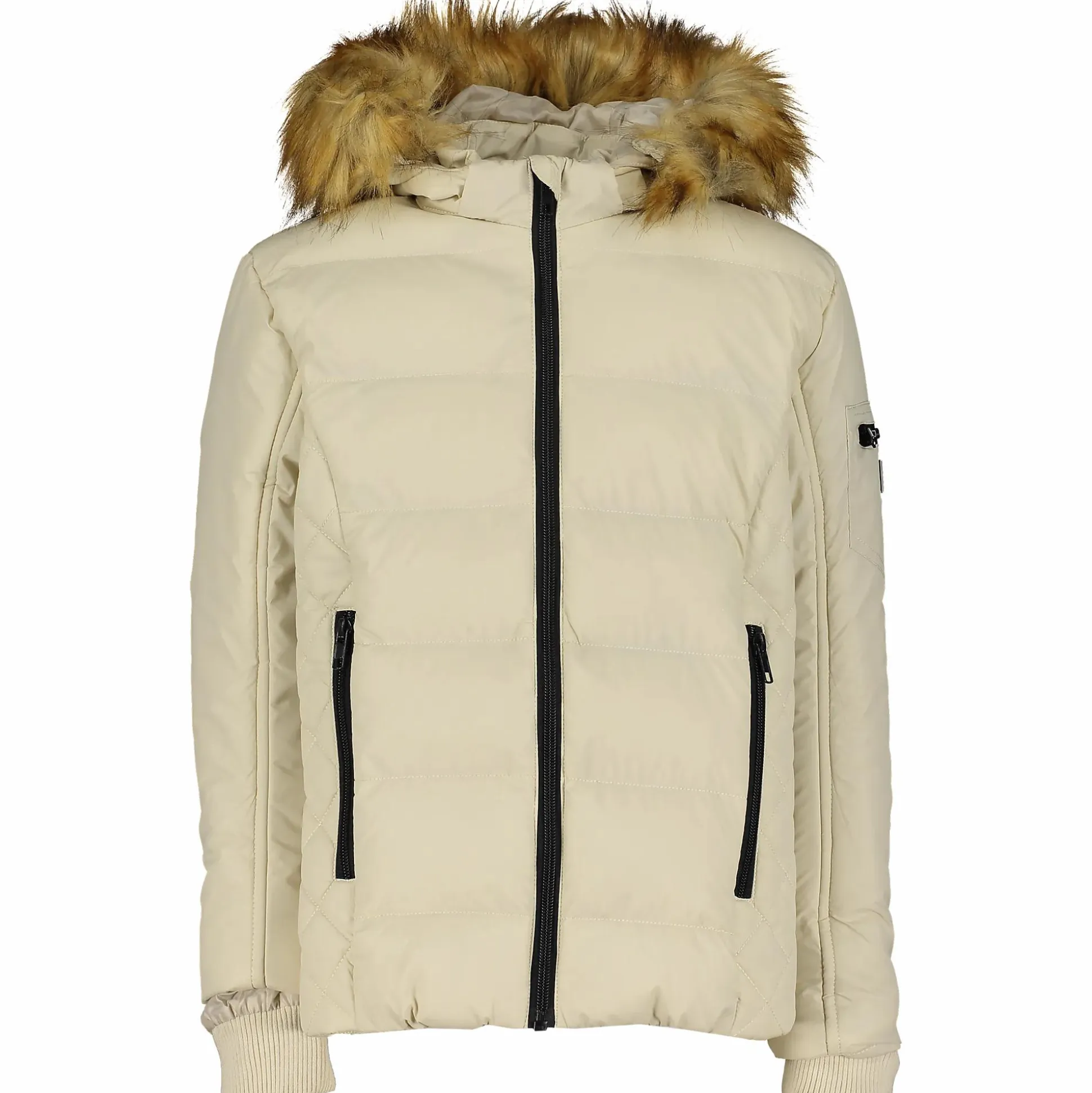 Denne vinterjakken for barn er designet for å gi varme og komfort på kalde dager. Jakken er vattert med syntetfylling som isolerer effektivt samtidig som den holder en lett følelse. Den har en fullengde glidelås med hakebeskyttelse for ekstra bekvemmelighet og beskyttelse mot gnaging. Hette er utstyrt med en avtakbar pelskant som gir jakken et klassisk vinteruttrykk og ekstra beskyttelse mot kulde. Ribbestrikkede mansjetter i ermelinningene hjelper til med å holde trekken ute, mens de praktiske sidelommene og en ermelomme med glidelås gjør det enkelt å oppbevare småting nær til hands.